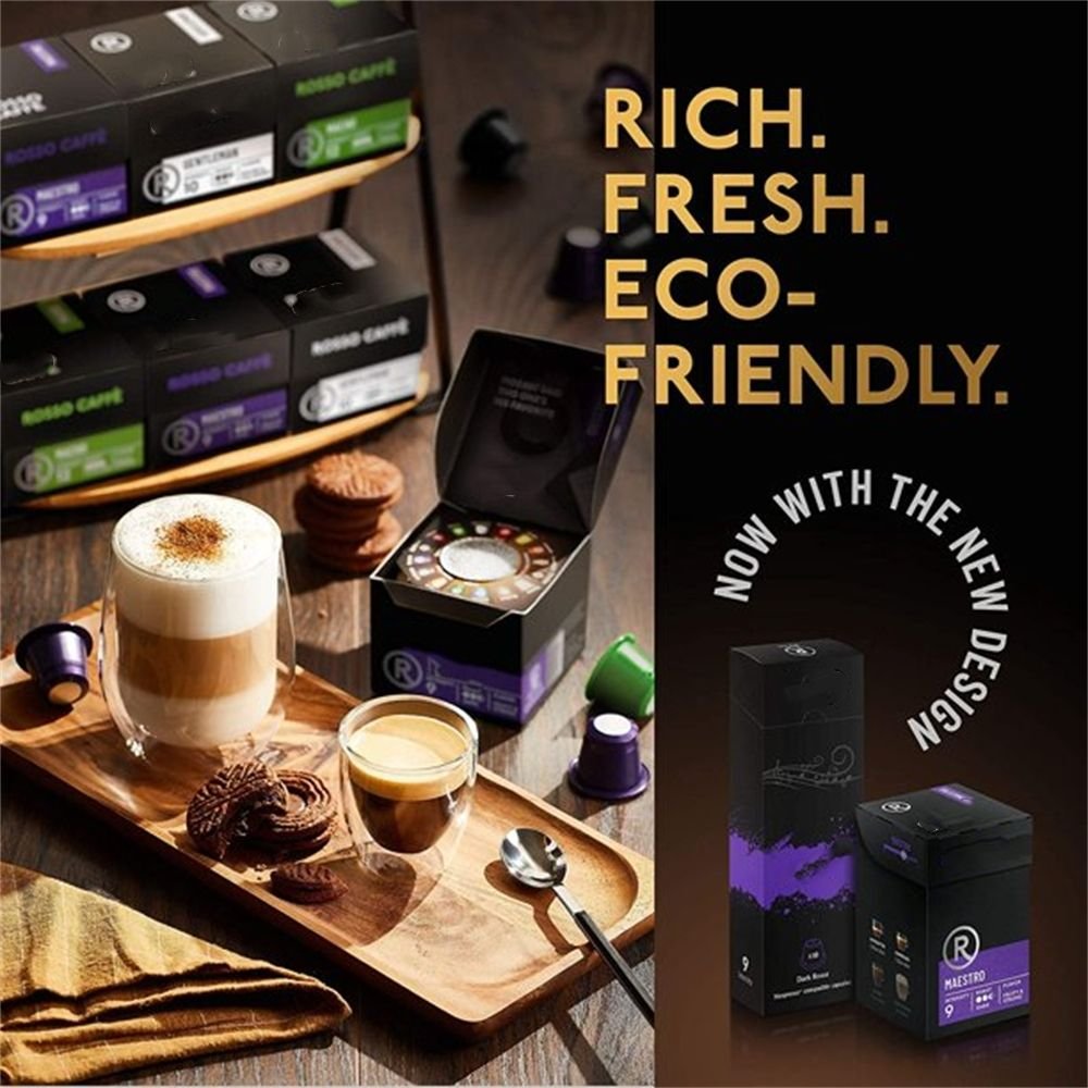 Discover top-shelf espresso at a great price! Available in two sizes; 60 and 120 count; both Gourmet Espresso Dark Roast Packs include three different coffee flavors ranging from dark roast Maestro and Gentleman to extra-dark Macho. It's simply the best way to discover your favorite flavor or satisfy the family's taste. Specially sealed for freshness; we pride ourselves in producing high-quality premium coffee pods that are engineered to work in all Original Line Nespresso Machines. Packaged with zero waste; each newly designed capsule is 100% recyclable.