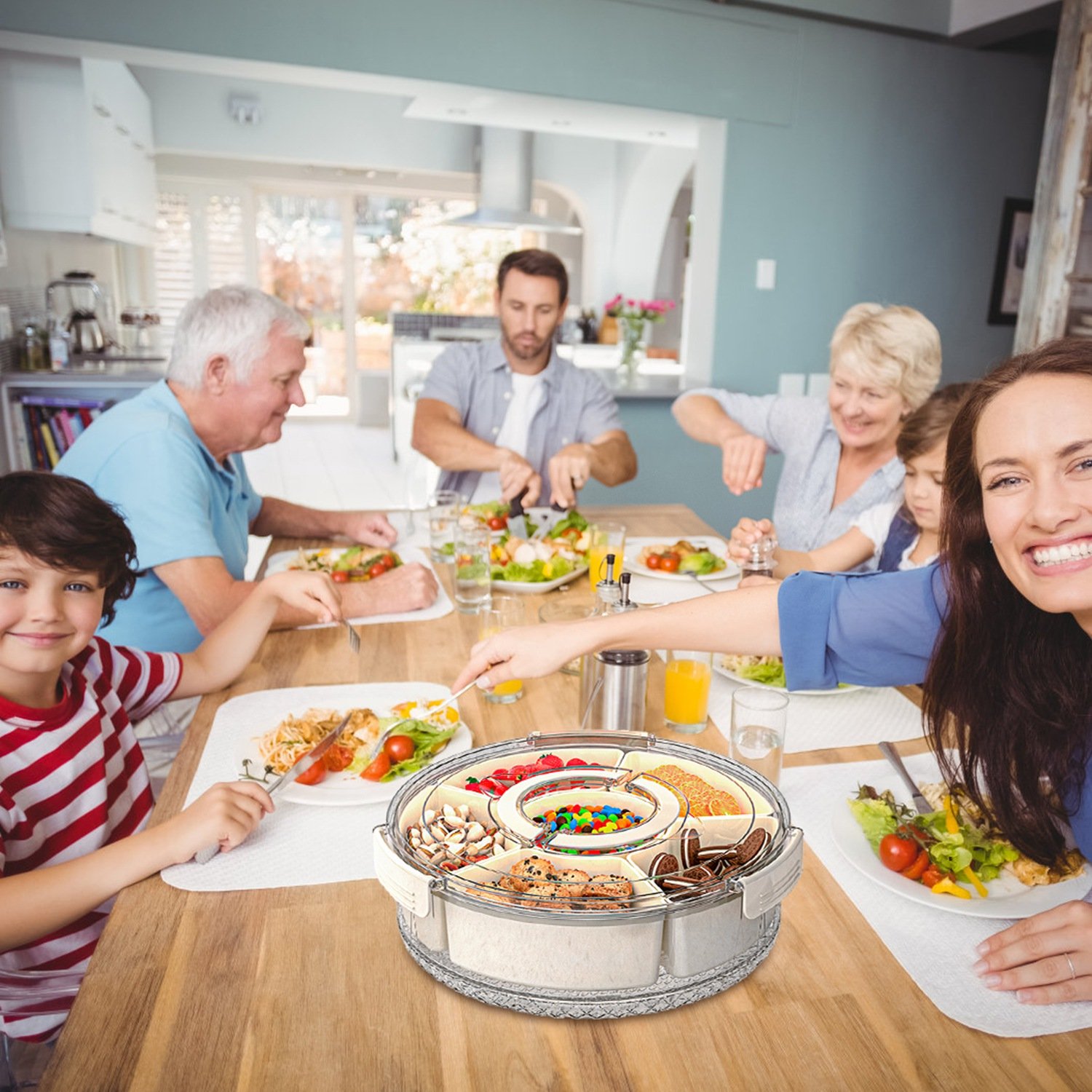 Home > 2Pcs Divided Serving Tray with Lid and Handle 360° Rotatable Snack Box Container with 6 Dividers Clear Portable Snack Platters for Fruit Candy Nut Sna