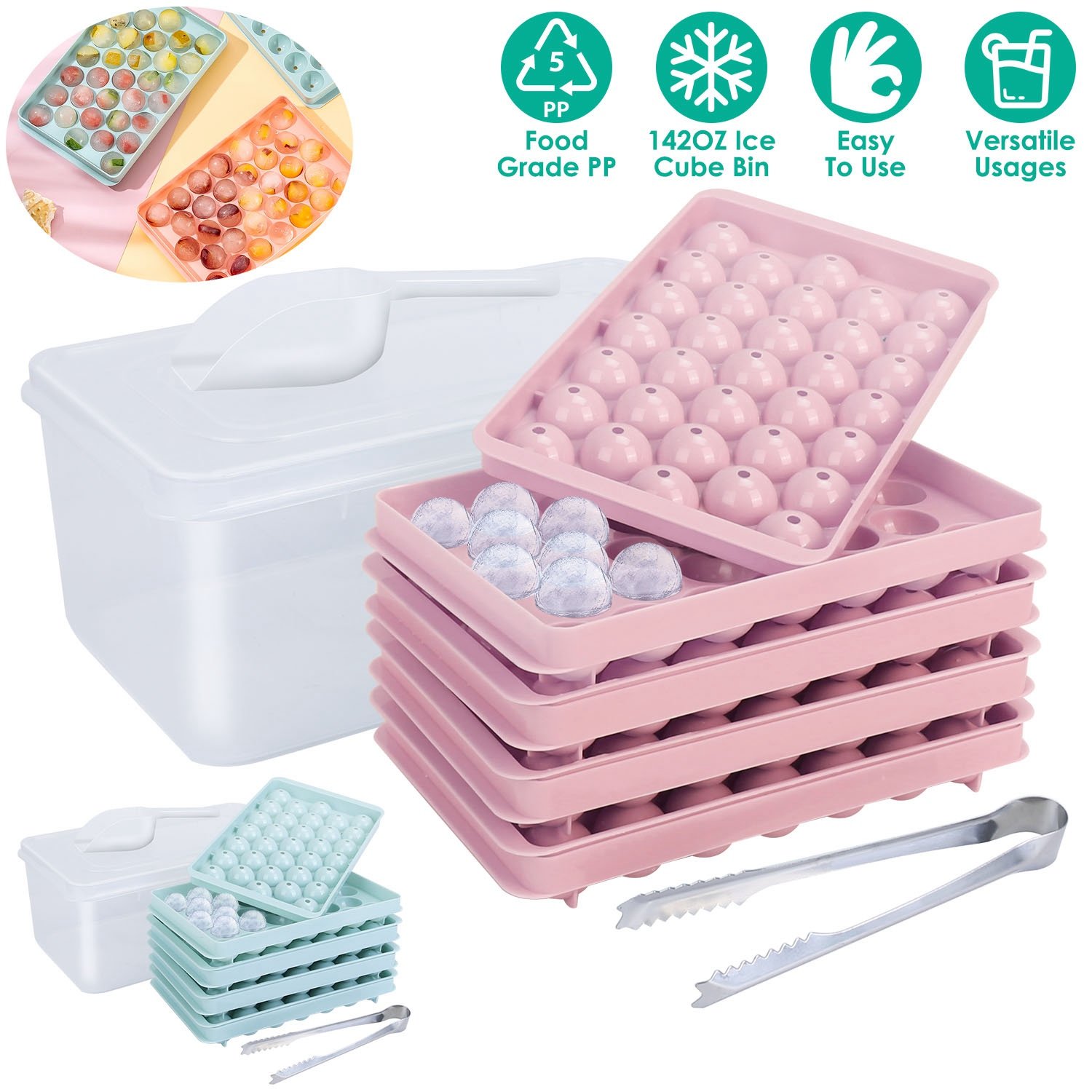 4 Packs Small Ice Cube Trays Mini Circle Ice Cube Tray Round Ice Ball Maker Mold with Lid Bin 132Pcs Ice Cubes for Chilling Drinks Coffee Juice Cockta