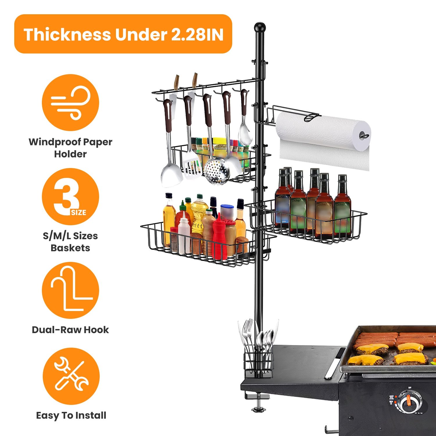 Griddle Caddy With Paper Towel Holder Hook Baskets BBQ Accessories Storage Rack Vertical Standing BBQ Organizer Grill Utensil Storage Fit For Blacksto