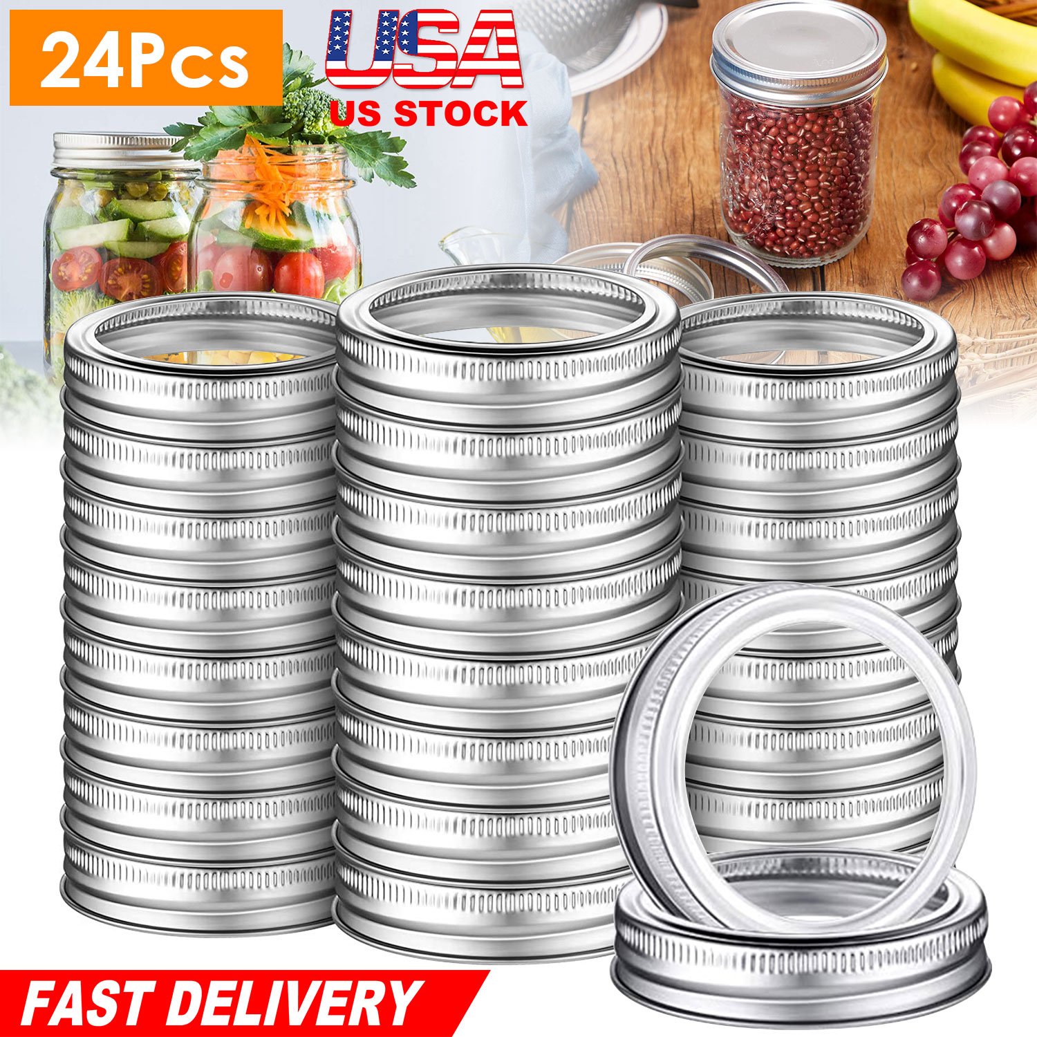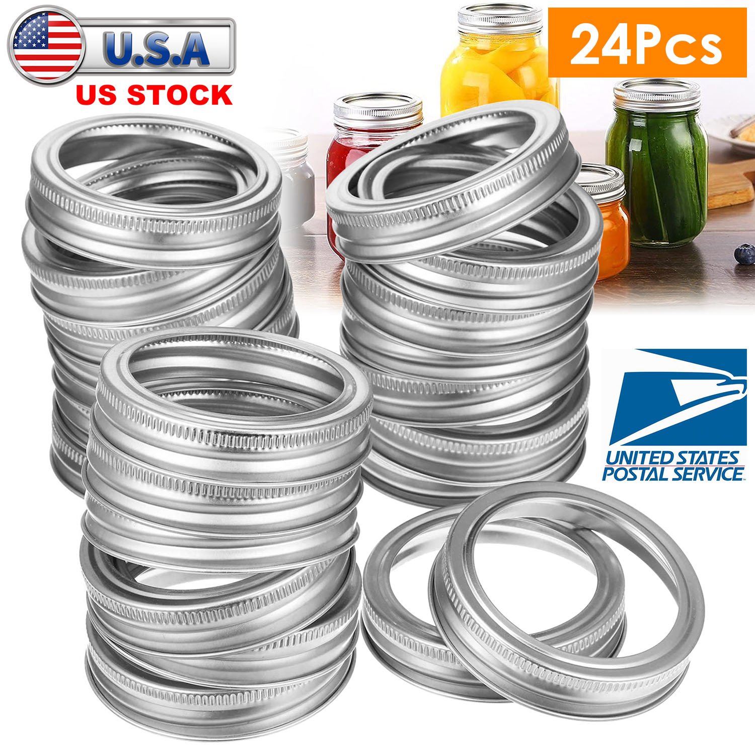 24 Pcs Regular Mouth Canning Jar Metal Rings Split-Type Jar Bands Replacement Fits For Ball Kerr Mason Jars