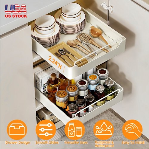 Home > Pull Out Cabinet Organizer Stick On Drawer Carbon Steel Pull Out Shelf Slide Out Pantry Organizer for Kitchen Bathroom Living Room 11.93"Wx16.61"Dx2.2