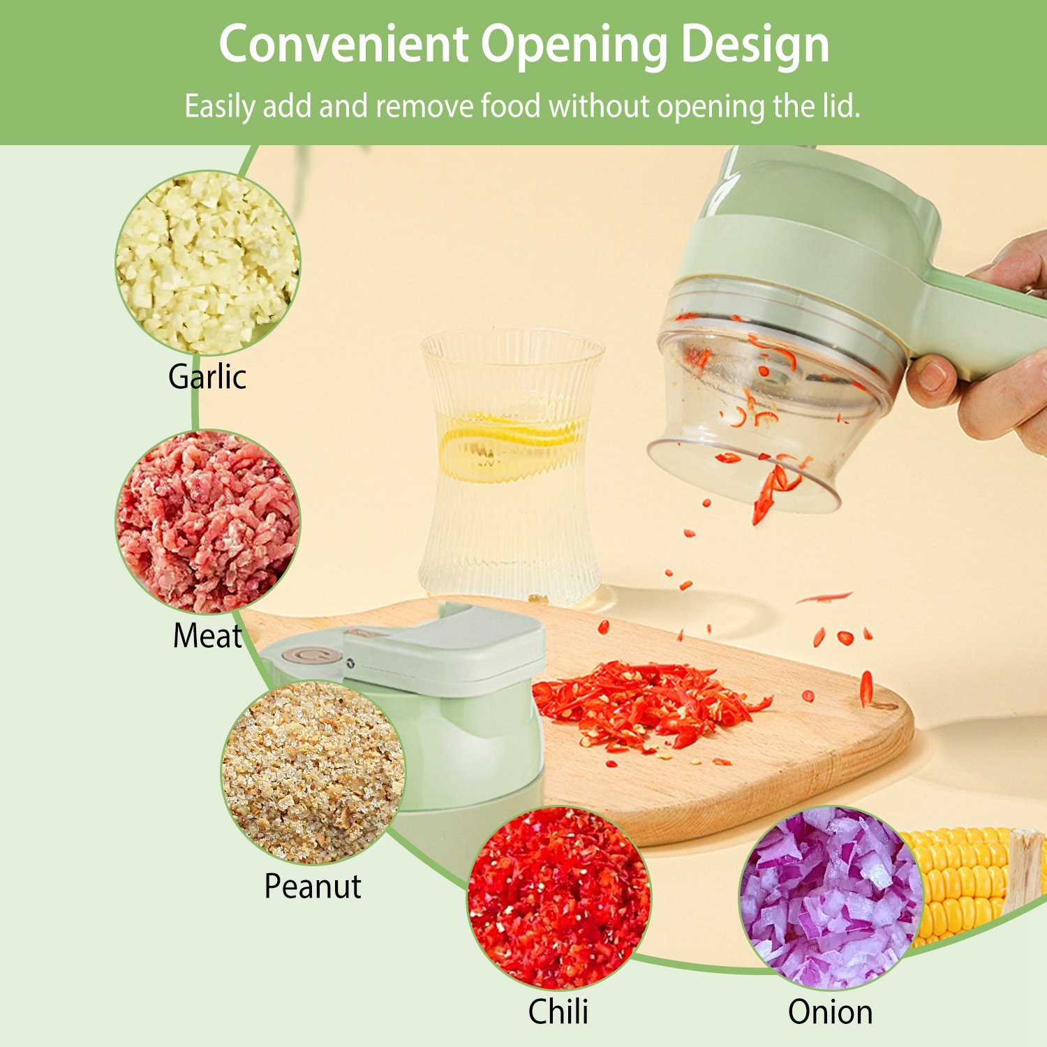 4 in 1 Handheld Electric Vegetable Cutter Mini Food Fruit Chopper Grinder Slicer Dicer Garlic Meat Ginger Mud Masher Rechargeable Food Processor