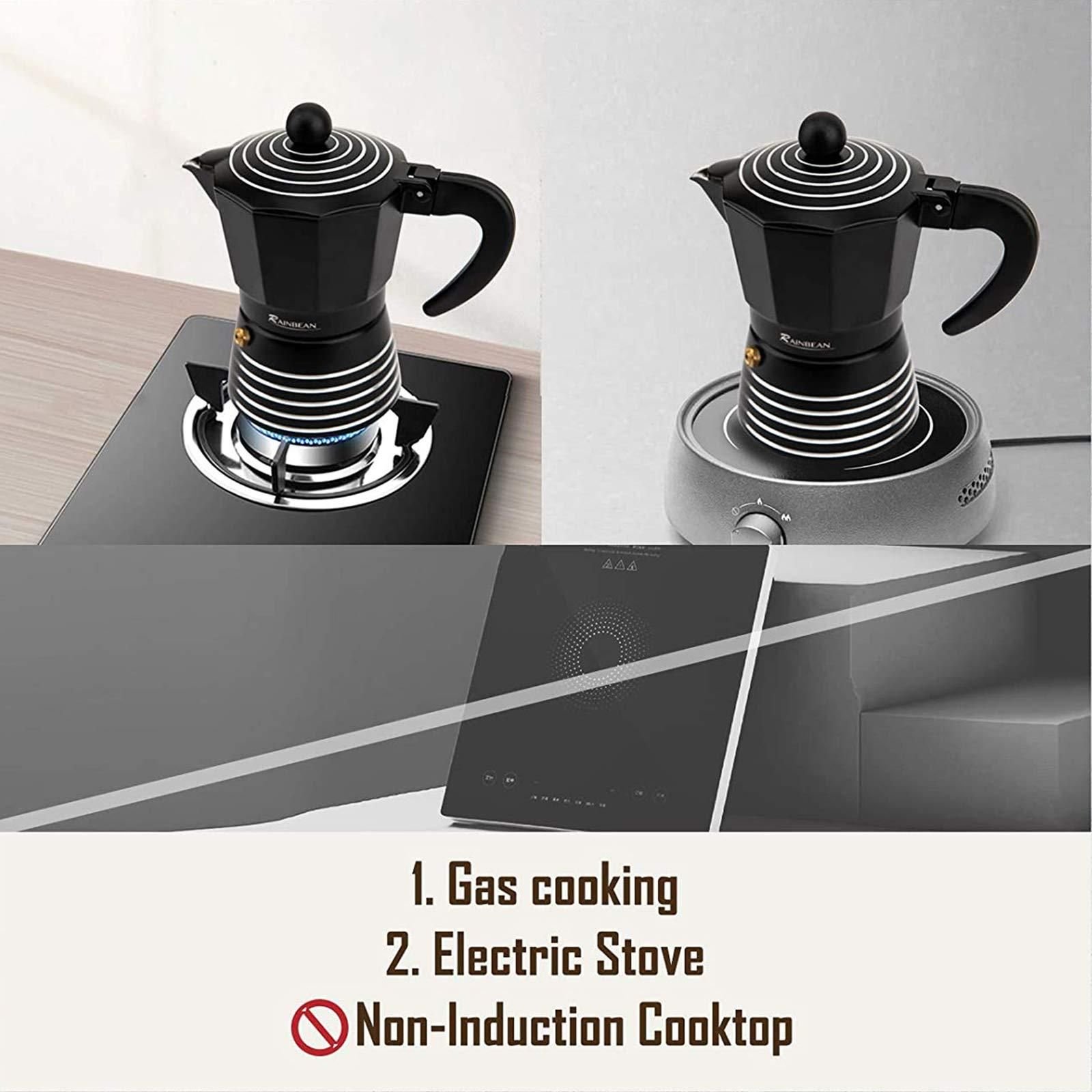 • [ BEST ESPRESSO OF BARISTA ] : RAINBEAN stovetop espresso maker differs from instant; capsule or drip coffee and serves genuine tasters with the best enjoyment in aroma; flavor; aftertaste; body and clean up due to richer caffeine flavor extraction.